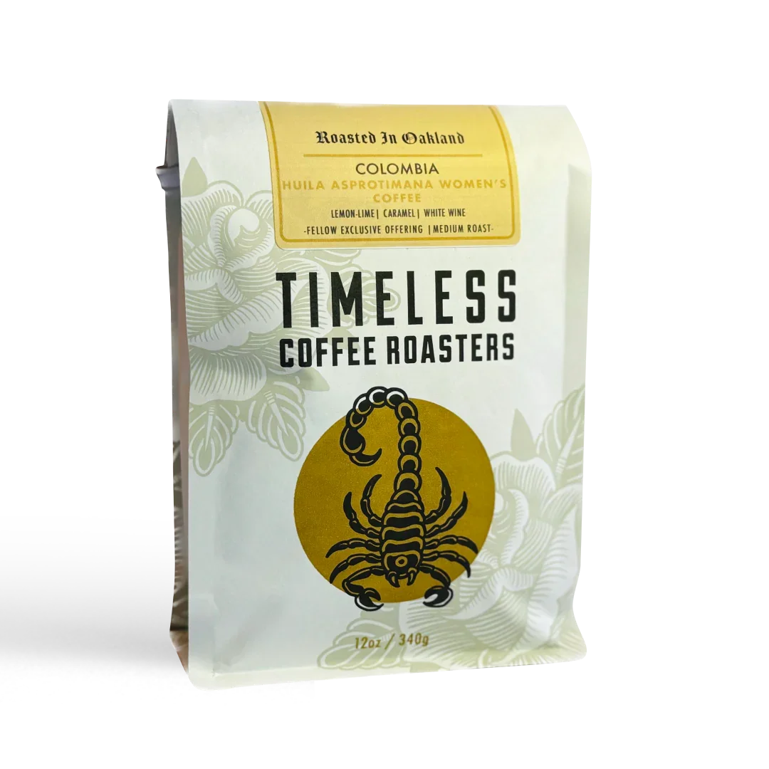 Oakland’s Timeless Coffee is a unique plant-based roaster. dedicated to being a good steward for both the coffee industry and the planet. They sourced this coffee from the Asprotimana program in Colombia. which works to establish coffee production from farms owned and managed by women. and it’s a stunner. We tasted lemon-lime. caramel. and white wine.