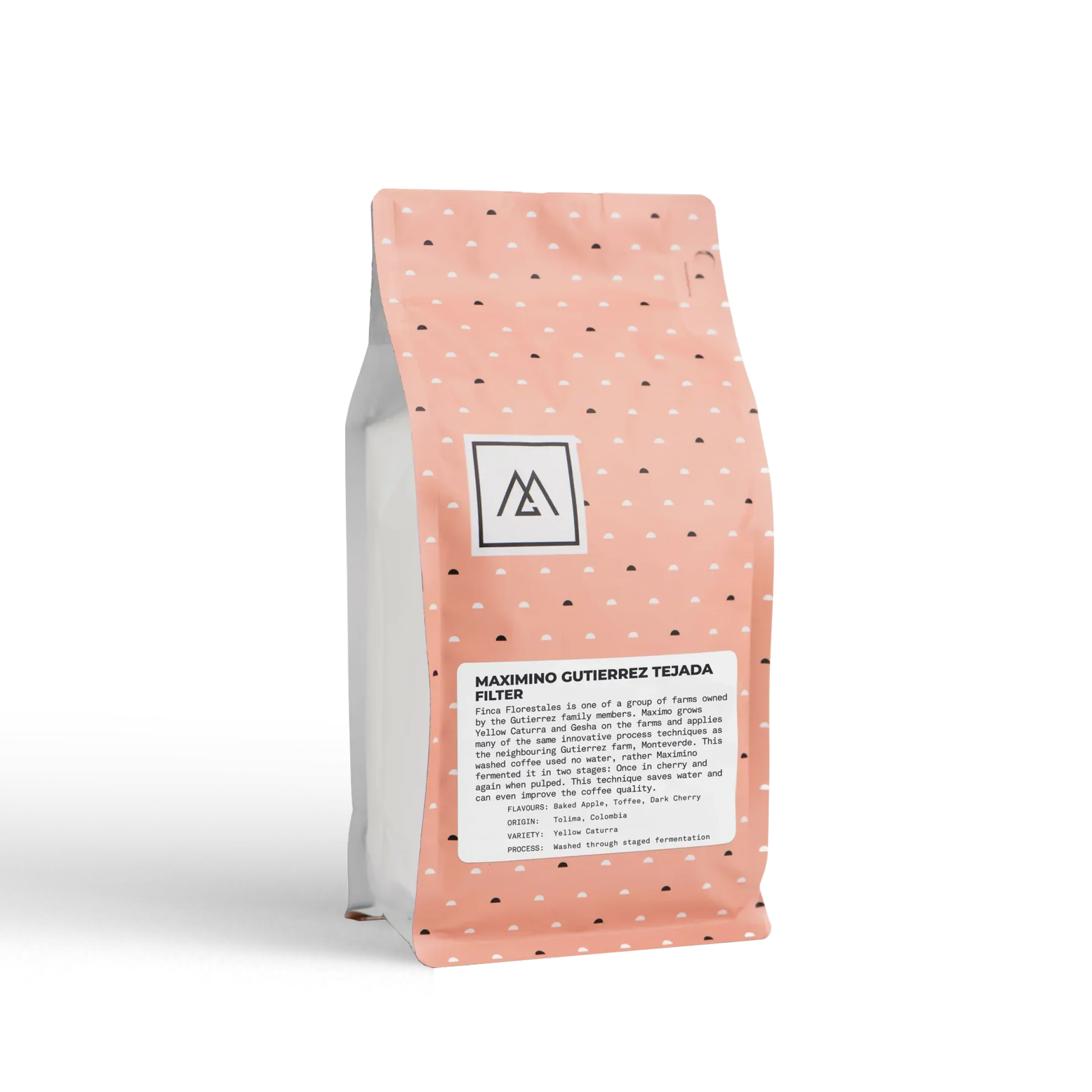 Maximino Gutiérrez Tejada is an innovative Colombian producer. born into a coffee-growing family. This is a washed coffee. but without the water. Instead it was fermented in two stages. in-cherry and after pulping. helping preserve water and delivering outstanding flavors. We tasted an expressive yet balanced cup of stewed apple. butterscotch. black tea. and dark chocolate.